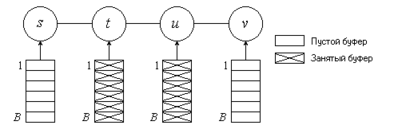 Контроллер принимает пакет, если пустых буферов в вершине больше, чем количество переходов, которые нужно сделать пакету.