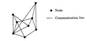 Алгоритмические проблемы и проблемы организации. Глобальные сети всегда организованы как сети типа точка-точка. Это означает, что коммуникация между парой узлов осуществляется при помощи механизма особенного по отношению к этим двум узлам. Такой механизм может быть телефонной линией, оптоволокном или спутниковой связью и т.д. Структура соединений в сетях точка-точка может быть хорошо изображена, если нарисовать каждый узел как окружность и связи между ними как линии, если линия коммуникация существует между этими двумя узлами, см. рис. 1.1. Говоря техническим языком, структура представляется графом, грани которого представляют собой линии коммуникации в сети. Сводка по терминологии теории графов приведена в Дополнении Б.