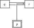 Византийско-устойчивый алгоритм согласия Брахи и Туэга. При t < N/3, t-Византийско-устойчивые протоколы согласия существуют. Необходимо, чтобы система связи позволяла процессу определять, каким процессом было послано полученное сообщение. Если Византийский процесс p может послать корректному процессу r сообщение и успешно симулировать получение процессом r сообщения от q (см Рисунок 13.4), проблема становится неразрешимой. Действительно, процесс p может моделировать достаточно много корректных процессов, чтобы навязать неправильное решение в процессе r.