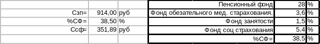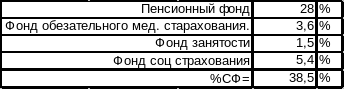 %СФ - процент отчислений в фонды социального страхования и обеспечения (38,5 %), в которые входят следующие фонды: