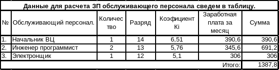 ЭВМ =3714,58 \ (138,6* 5)=5,36 (руб)