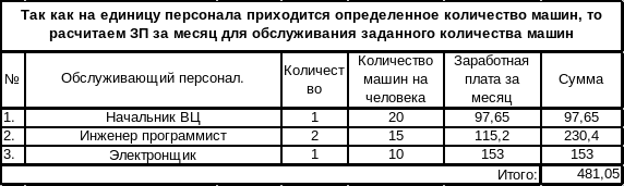 этой таблице находится заработная плата за месяц для заданного количества машин. Для этого надо разделить ЗП на количество машин полагающееся каждой единицы персонала и умножить на заданное количество машин, получив нужную заработную плату за месяц.