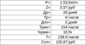 СЭЛ=1,53*138,6*0,57=120,87 (руб)