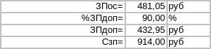 ЗПДОП= (481,05*90,00)/100=432,95 (руб)