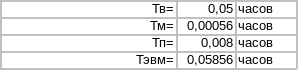 ЭВМ=0,05+0,00056+0,008=0,05856 (часов)