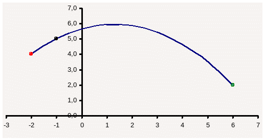 Таким образом, парабола, проходящий через точки A(-2;4), B(-1;5), C(6;2), имеет вид