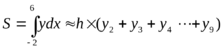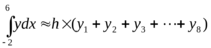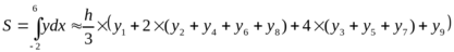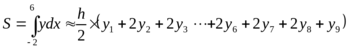 Для определения площади фигуры с помощью формул численного интегрирования в пределах отрезка (-2; 6) проведем по семи точкам.