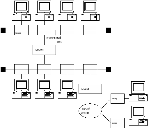 Рис.2 Волоконно-оптическая сеть Ethernet