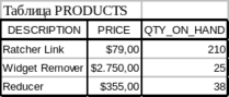 | MFR_ID | PRODUCT_ID | DESCRIPTION | PRICE | QTY_ON_HAND |
