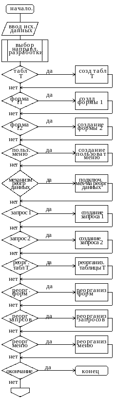 Блок 2 – разработать элемент с помощью установки курсора на соответствующую опцию, обслуживающую меню пакета (СУБД) и нажать клавишу ENTER.