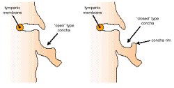 Слева ушная раковина открытого типа, справа - закрытого типа