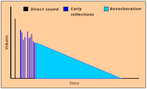 Reverberation decay time - время затухания реверберации. Это время, необходимое для того, чтобы реверберация была полностью поглощена воздухом и стенами в помещении. Например, в большом ангаре со звукоотражающими стенами время реверберации порядка 10 секунд, в палате со стенами из войлока очень хорошо поглощающих звук, время затухания реверберации около 0.2 секунды.
