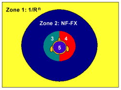 acroFX предусматривает 6 зон, где зона 0 (это дистанция удаления) и зона 1 (дальнее поле) будут работать точно так же, как работает дистанционная модель DS3D. Другие 4 зоны это и есть near field (ближнее поле) в стиле MacroFX, покрывающие дистанцию рядом с головой слушателя, левое ухо, правое ухо и пространство внутри головы слушателя. При этом здесь также вводятся ограничение на дистанцию, чтобы сократить накладные расходы при вычислениях. Поэтому в зоне 2 используется стандартный алгоритм Near-Field FX, а в зонах 3, 4 и 5, которые начинают работать с расстояния в 20 см, используется как таковой алгоритм MacroFX. Эти три зоны рассчитаны на источники звука, расположенные очень близко к ушам пользователя (левому или правому). Если источник звука должен находится как бы в голове пользователя (например, переговоры авиадиспетчеров в авиасимуляторе), то для этого используется зона 5.
