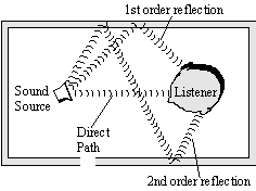 Запаздывающий отраженный (late order reflections) звуковой сигнал воспринимается как эхо или реверберация (reverberation). Вот разумное объяснение этому: человек имеет возможность индивидуально воспринимать первый отраженный звук, в то время как второй и все последующие отраженные звуки обычно смешиваются в форму поля запаздывающих отраженнных звуковых сигналов или просто эхо.