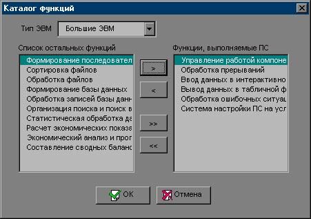С помощью кнопок “>”, “>”, “<<” пользователь может перемещать функции из одного поля в другое. Перемещение одной функции осуществляется с помощью кнопок “>”, “<”, а перемещение всех функций одновременно – с помощью кнопок “>>”, “<<”.