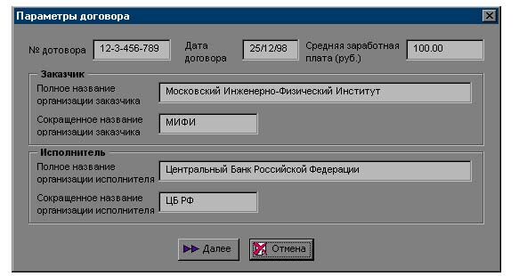Рис.2.Окно “Общие параметры договора на разработку ПС”