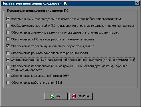 Показатели повышения сложности ПС – показатели повышения сложности сопровождаемого ПС, выбираются пользователем АС с помощью флажков: