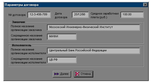 Рис.9. Окно “Общие параметры договора на сопровождение ПС”