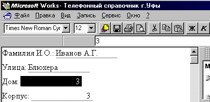 Чтобы занести значение в поле, надо выделить область значений, щелкнув по ней мышкой. Область выделится черным цветом. После этого можно вносить данные.