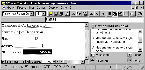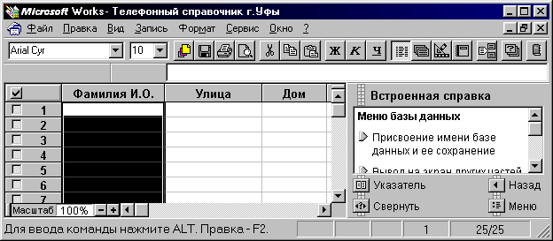 СОЗДАНИЕ БАЗЫ ДАННЫХ В ИНТЕГРИРОВАННОМ ПАКЕТЕ WORKS.