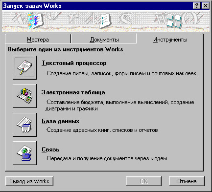 При работе с другими прикладными программами, многие из них также могут быть использованы совместно с Works для создания или дополнения документов.