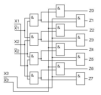 В зависимости от количества разрядов входного числа и от количества входов элементов, на которых построен дешифратор. Дешифраторы могут быть линейные, у которых все переменные Х1, Х2, Х3 подаются на вход одновременно.