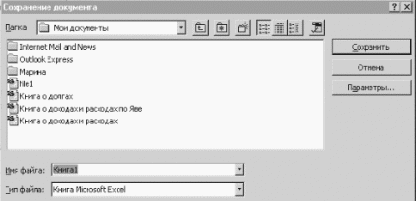 При первом сохранении документа нужно вызвать из меню Файл директиву Сохранить как... После этого откроется диалоговое окно, в котором нужно указать имя сохраняемого файла, а также диск и директорию, в которой его надо расположить. Предлагаемое по умолчанию программой Excel расширение файла .XLS, изменять не следует.
