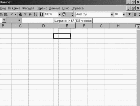 Коррекцию можно выполнить и с помощью манипулятора мыши. Для этого указатель мыши нужно установить на границу между номерами строк или адресами столбцов.