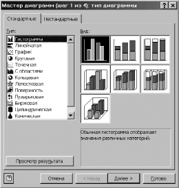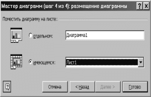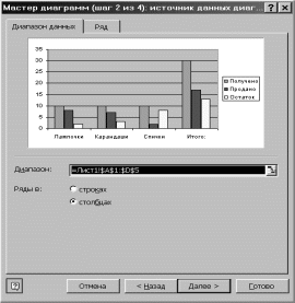 После этого Конструктор открывает диалоговое окно, в котором за четыре шага нужно построить диаграмму. Работа с Конструктором настолько интуитивно понятна, что не требует каких – либо пояснений.