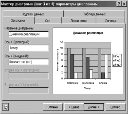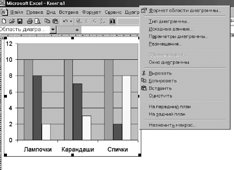 Рис.13. Диаграмма к отчету о реализации: после построения любой параметр диаграммы легко изменить, используя контекстное меню