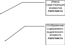 Чтобы вставить элемент Автотекста, надо указать его имя, элементы же Автозамены вставляются автоматически при наборе текста.