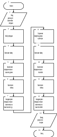 Блок 3. Выбираем операцию из предложенных на экране. Если это операция сложения, то выполняется алгоритм суммирования ряда, если умножение, то выполняется вычисление факториала.
