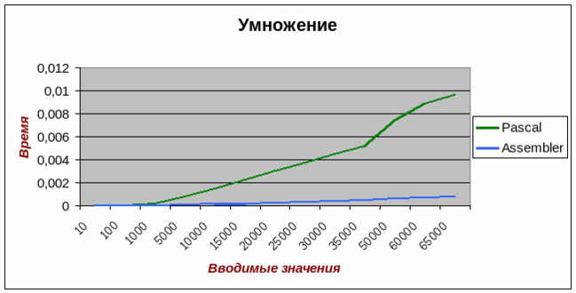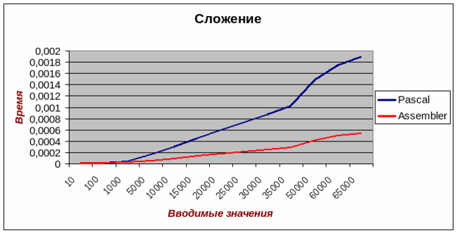 При имеющихся у нас данных мы можем смело сделать выводы, что компилятор языка Pascal (и многих других языков программирования) расходует ресурсы микропроцессора неэкономно, тратя много времени на различные «лишние» действия, которые приводят, как мы заметили, к заметному снижению производительности.