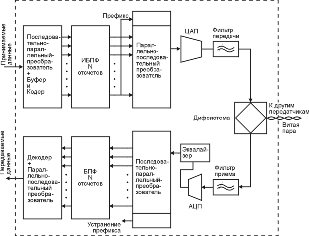 Ввести корректор времени (Time Domain Equalizer – TEQ) для компенсации функции передачи по каналу. Однако это решение окажет существенное влияние на сложность аппаратной реализации, а также реализацию алгоритмов, необходимых для вычисления оптимального набора коэффициентов.