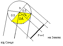 R – кутовий радіус світила (AYD/2),