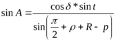 Азимут А світила при сході і заході можна знайти з виразу: