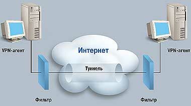 Как видно из описания, VPN-агенты создают каналы между защищаемыми сетями, которые обычно называют “туннелями”. И действительно, они “прорыты” через Интернет от одной сети к другой; циркулирующая внутри информация спрятана от чужих глаз.