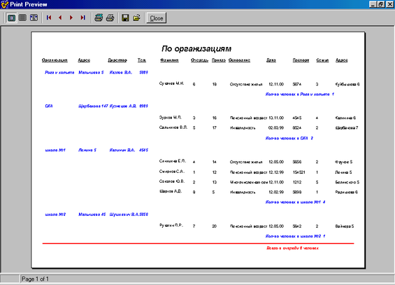 Также необходимо создать отчёт с итогами по каждой организации и базовый отчет.