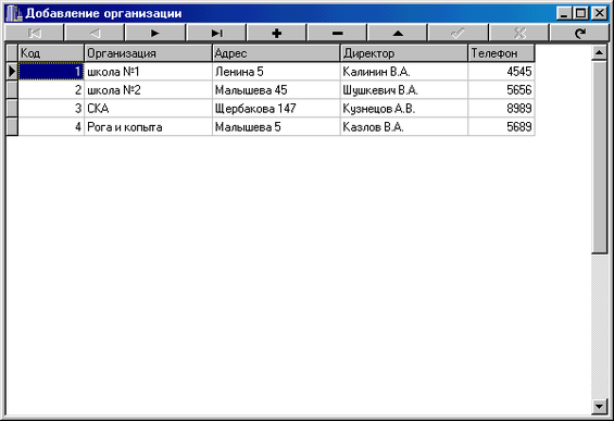 Справочник по организациям (код, наименование организации, адрес, директор, телефон);