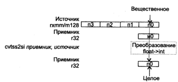 CVTSS2SI (ConVerT Scalar Single-precision float-point to Scalar signed Int32) -скалярное преобразование вещественного целого в 32-битное знаковое целое.