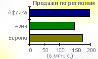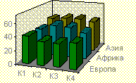 оказанная на рисунке трехмерная диаграмма позволяет сравнить объемы продаж в Европе за каждый квартал с объемами продаж в двух других регионах.