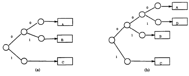 Вначале имеется только указатель на динамически выделенный пустой блок. При добавлении элемента вычисляется псевдоключ, и его биты поочередно используются для определения местоположения блока. Например (см. рисунок), элементы с псевдоключами 00… будут помещены в блок A, а 01… - в блок B. Когда А будет переполнен, он будет разбит таким образом, что элементы 000… и 001… будут размещены в разных блоках.
