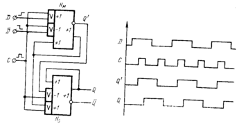 Таким образом, положительный перепад тактирующего сигнала переключает Нм, а отрицательный перепад – Hs. В итоге после одного тактирующего импульса триггер переключается из состояния 0 в состояние 1.