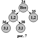 Уменьшенную матрицу можно привести на 1 по первому столбцу, так что каждый тур, ей отвечающий, стоит не меньше 35. Результат наших ветвлений и получения оценок показан на рис.6.