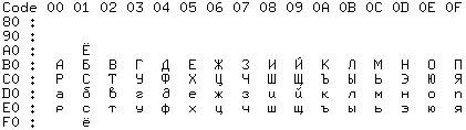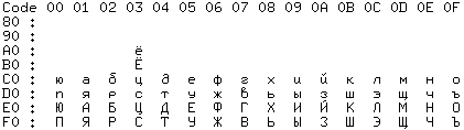 | В данной таблице указано расположение русских букв в второй половине расширенной кодовой таблицы. |