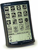 Компания Franklin Electronic Publishers с самого основания взяла направление на разработку карманных устройств, выпустив в 1986 году электронный прибор для проверки правописания Spelling Асе®. За ним последовало семейство карманных помощников: Библия, толковые и лингвистические словари, медицинские справочники, органайзеры и различные игровые приставки. А в июне этого года на выставке PC Expo 2000 чуть ли не главным событием был принципиально новый продукт компании, объединяющий в себе устройство чтения и прослушивания электронных книг, все преимущества органайзеров, таких как PalmPilot или Pocket PC, МРЗ-плейер и диктофон. Его имя - eBookMan. Всего компания выпустила 3 устройства, незначительно отличающихся друг от друга.