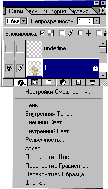 нажмите кнопку с буквой «f» внизу палитры Слои и выберите эффект в открывшемся списке;