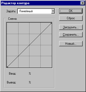 Щелкните на образце. В окне Редактор контура можно его отредактировать. Форма задается градационной кривой. Ее горизонтальная ось соответствует краю объекта, то есть расстоянию от начала растушевки до полной прозрачности. По вертикальной оси отложены значения непрозрачности тени.