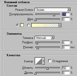 Элементы управления вкладки Внешнее свечение окна Стиль слоя.