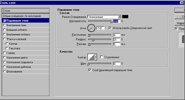 Диалоговое окно Стиль слоя, вкладка Падающие тени.